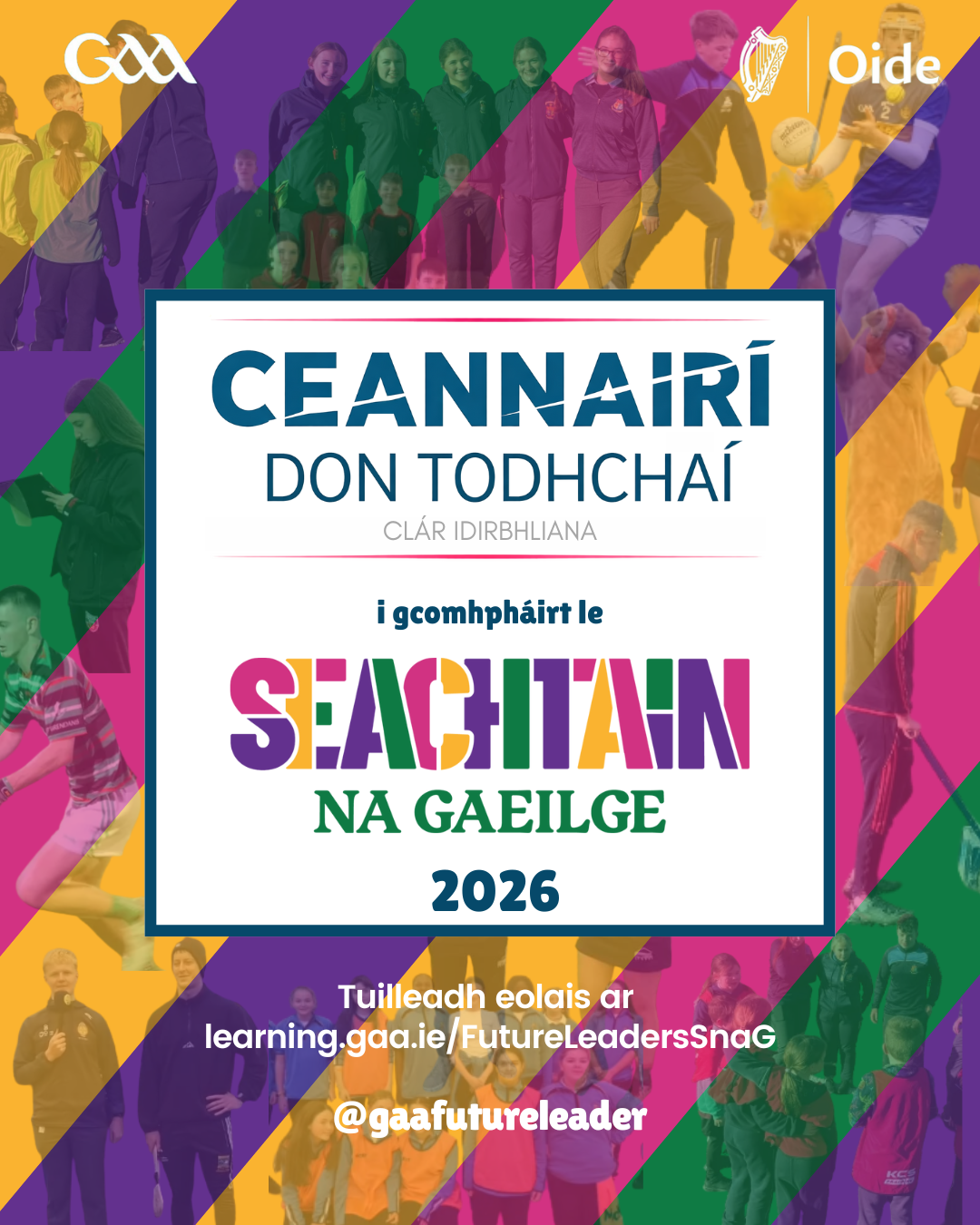 Táimid ar bís a fhógairt go bhfuilimid ag obair le Seachtain na Gaeilge 2026 chun scoileanna Ceannairí don Todhchaí / Future Leaders a spreagadh le himeacht Future Leaders a eagrú trí Ghaeilge le linn an dá sheachtain de Sheachtain na Gaeilge.